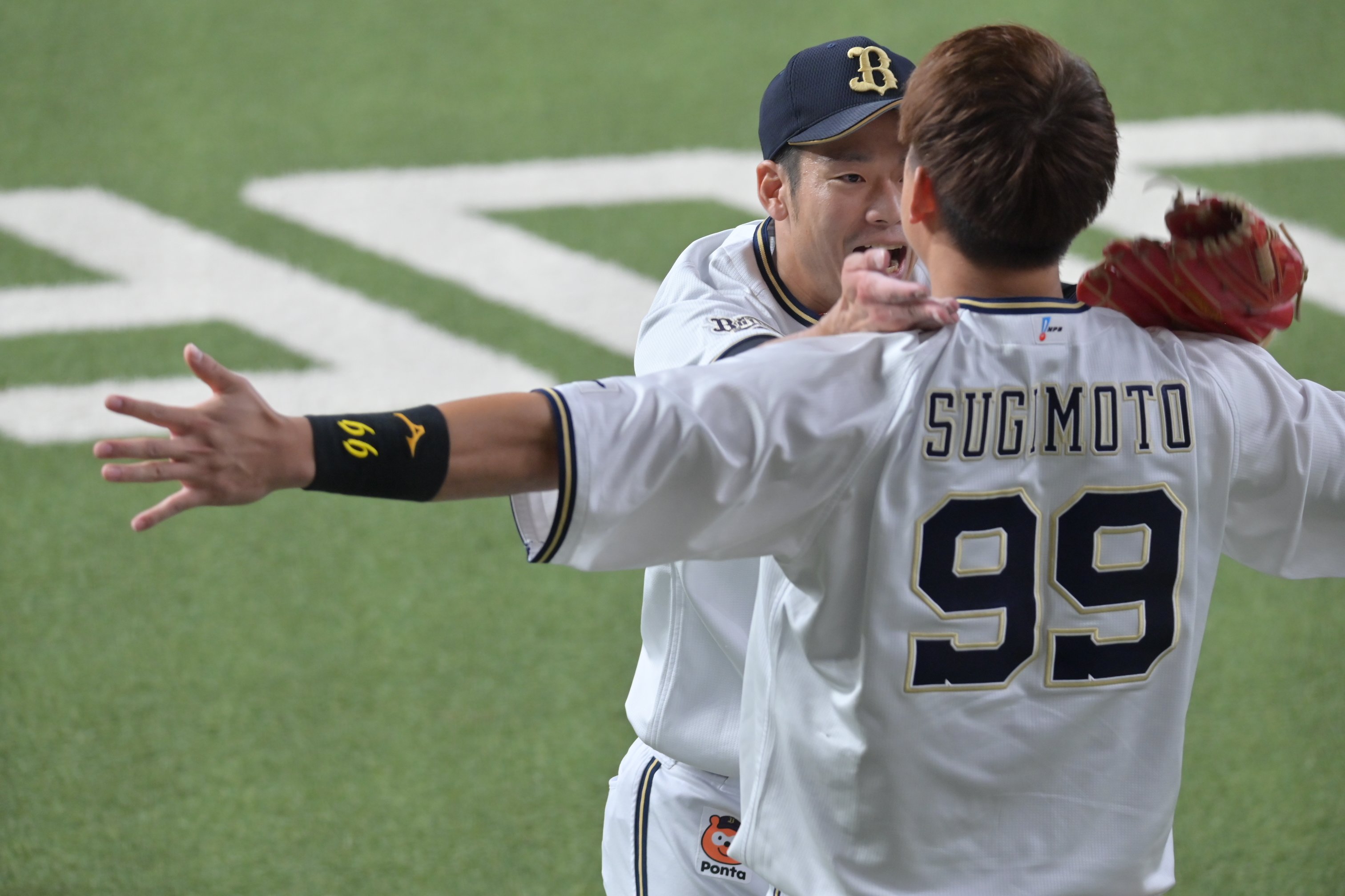 近藤のラオウ登場ハグすると見せかけてモンゴリアンチョップwww #オリックス #オリックス・バファローズ #オリックスバファローズ #近藤大亮 #杉本裕太郎 #BS2022 pic.twitter.com/ndq0iTZCSF