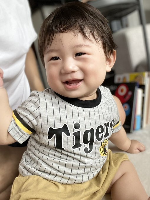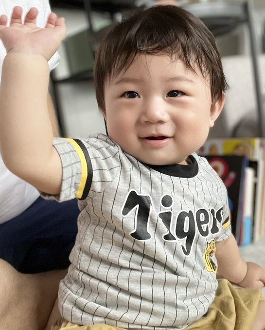 阪神ファンの皆様。うちの息子をよろしくお願いします🐯⚾️ #阪神タイガース #ちびタイガース #とらほー #知らない間に着てた #まるで選手かのような手振り pic.twitter.com/YduMYxYiT0