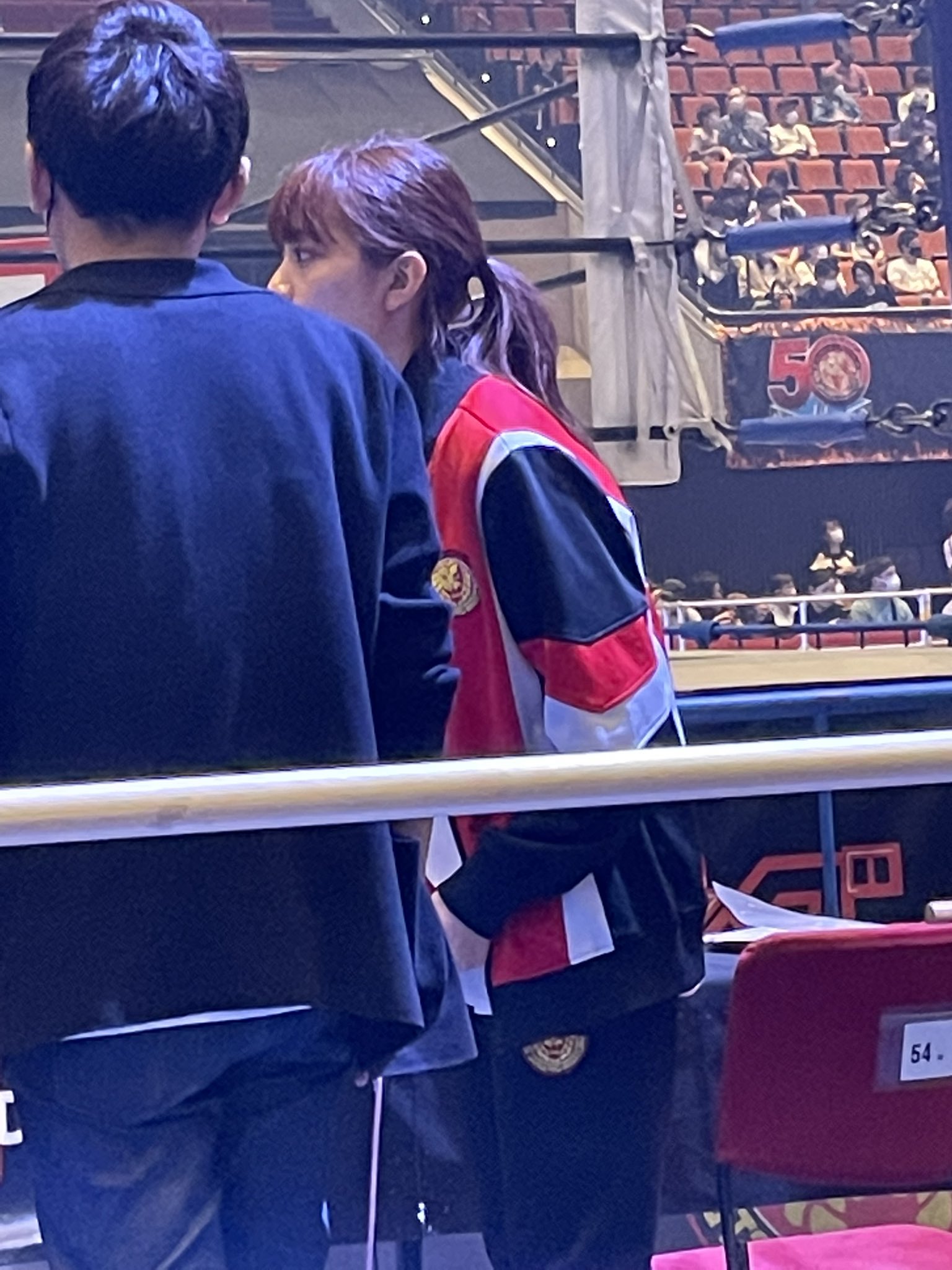 赤コーナーのセコンドに中西学さんが登場!
