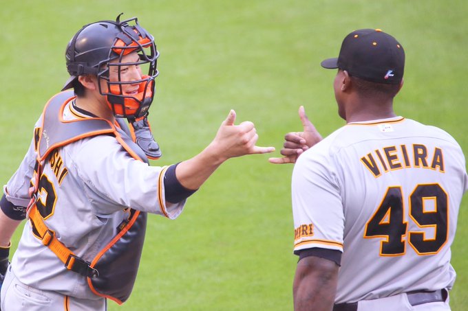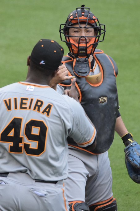 #ビエイラ 投手が、この回も3者凡退に抑える。
