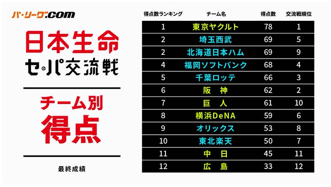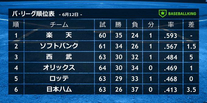 📈パ・リーグ順位表📉