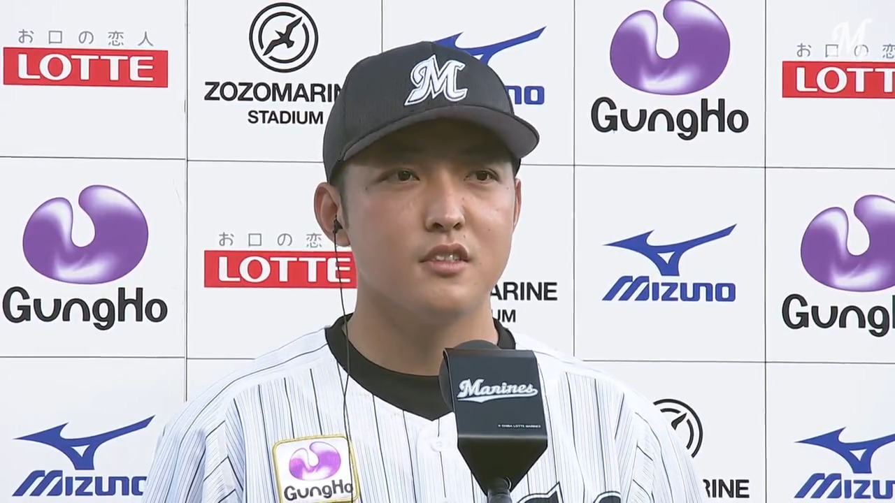 試合後、今日のリードについて佐藤都志也選手に代表取材で尋ねました。楽しかったです。プロの捕手ってすごい。後ほど記事にします。#chibalotte