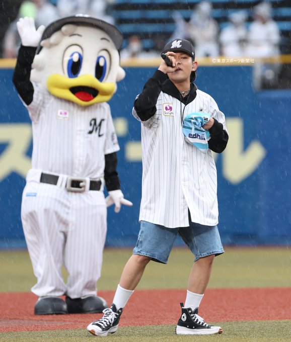2022年6月12日(ZOZOマリンスタジアム)#交流戦 ロッテ×横浜 試合前、 #edhiiiboi マリーンズ交流戦応援ラップ「GRAB THE WIN」披露 #マー君 #chibalotte pic.twitter.com/ZTkpezEpFD