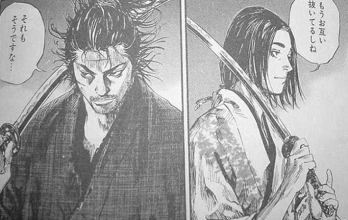 侍っていうだけかもしれないけど、今回のイラストはバガボンドを参考にしているのかもって思った。