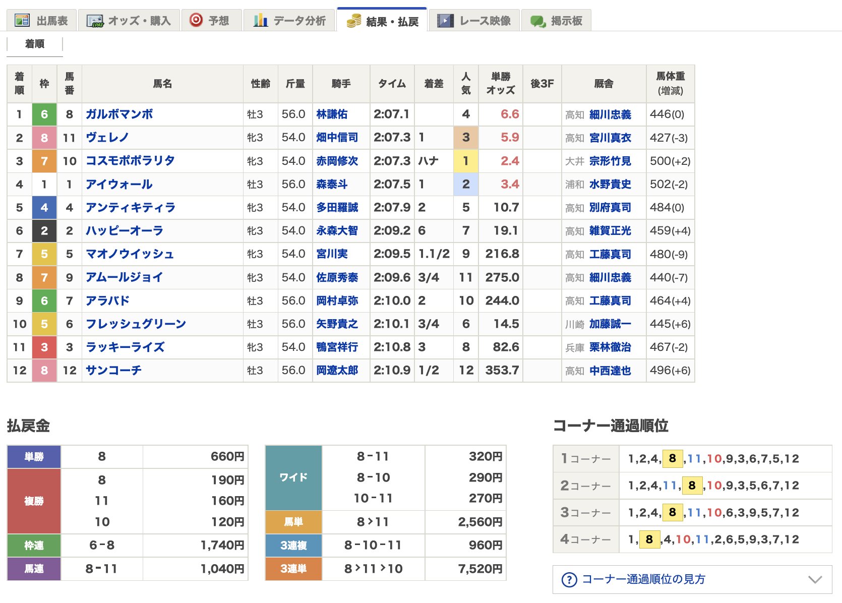 #高知競馬 の #高知優駿 #ガルボマンボ 号優勝!