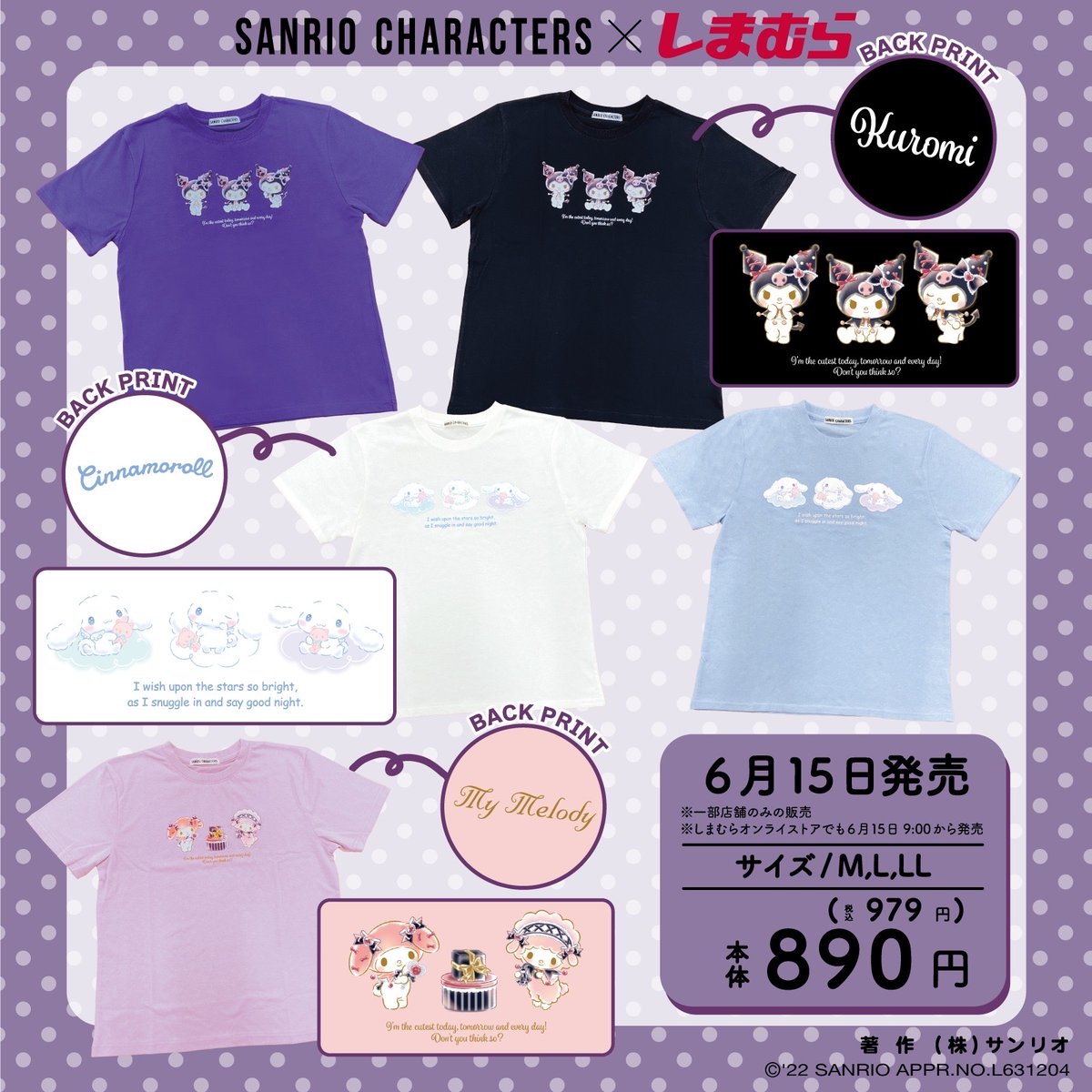 #しまむら からクロミ、シナモロール、マイメロディのTシャツが数量限定で登場!やさしいタッチのキャラプリントに癒される♡6/15(水)~限定店舗&オンラインストアでね!販売店舗は→ sanrio.eng.mg/123bf #サンリオ pic.twitter.com/TrPFP3Qu0S