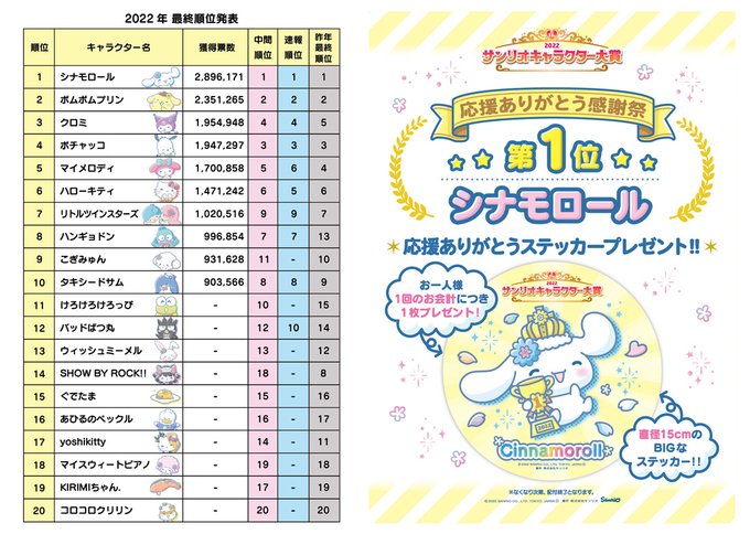 #サンリオキャラクター大賞2022 #サンリオ pic.twitter.com/iZg0FUoCsm