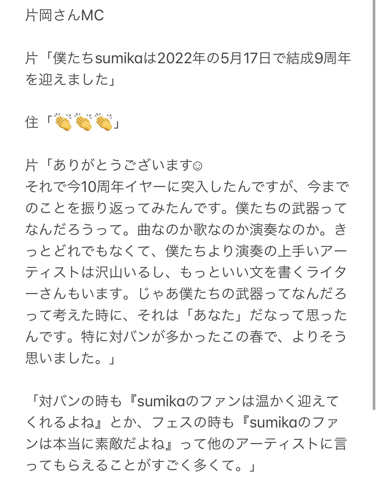 最後のMCで片岡さんが
