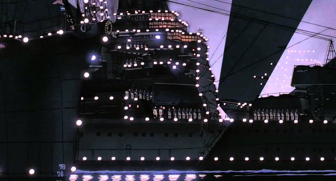 庵野秀明さんが昔の資料を大量に集め、1ヵ月かけて丁寧に満艦飾の軍艦を描いたのに、樋口真嗣さんの奥さん(当時美術スタッフだった)に真っ黒に塗り潰された『火垂るの墓』 pic.twitter.com/Jc9pBB7Sm1