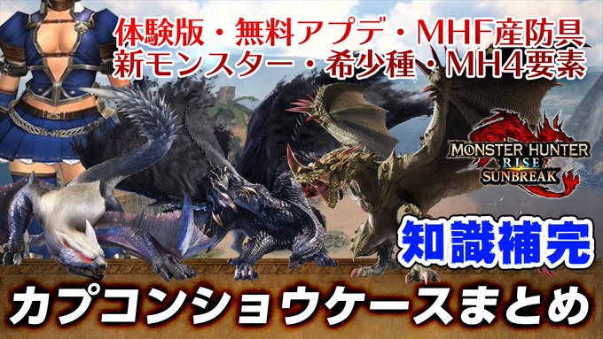 サンブレイクにMHF装備が!無料アップデートでナルガクルガ希少種!追加モンスターにフロンティア産エスピナス亜種か?新フィールド塔の秘境!体験版の時間など最新情報まとめ【モンハンライズ:サンブレイク】youtu.be/2yziuk-6GhE @YouTubeより