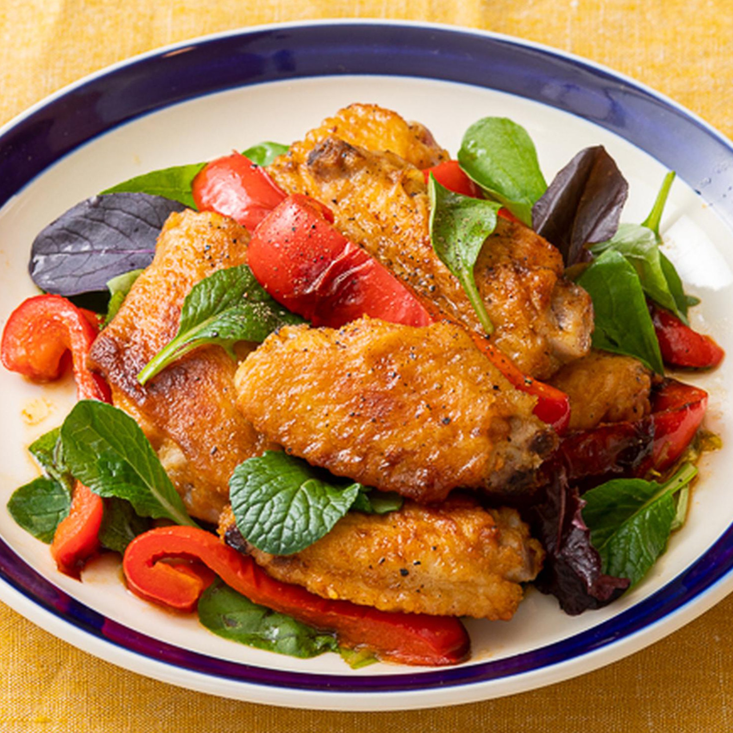 【揚げ手羽先とパプリカのだししょうゆ漬け】