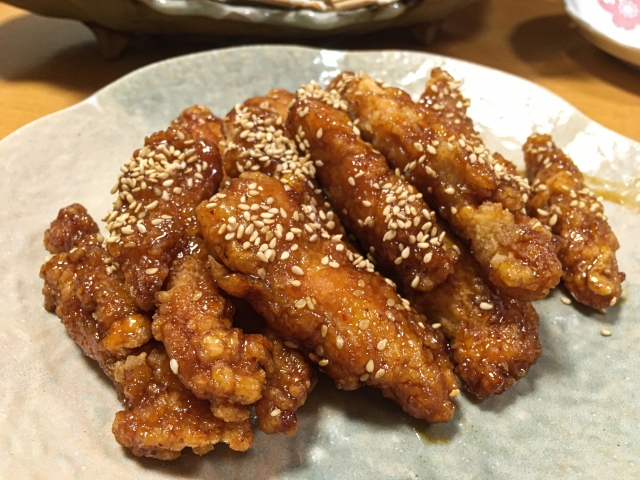 醤油ベースの甘辛タレを絡めた