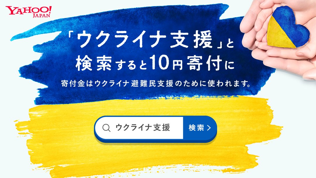 6月14日~19日、ヤフーで「ウクライナ支援」と検索すると、お一人につき10円がヤフーからウクライナ避難民支援活動に寄付されます➡️yahoo.jp/24jQgY