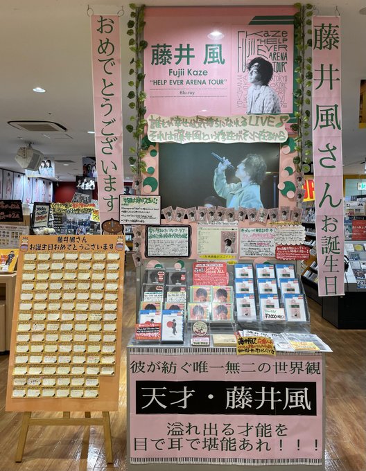 お誕生日マンスリーということで『Fujii Kaze "HELP EVER ARENA TOUR"』はお誕生日仕様でまだまだ大展開中です🥳柱やメッセージボードは6月27日(月)までです🙌🏻(風船は頑張って空気いれて維持しますね🌬️)