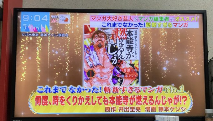 『#ラヴィット!』 で放送されました「これまでなかった! 斬新すぎるマンガ」コーナーにて、ヤンマガからは『何度、時を繰り返しても本能寺が燃えるんじゃが!?』と、『1日外出録ハンチョウ』をご紹介して頂きました。
