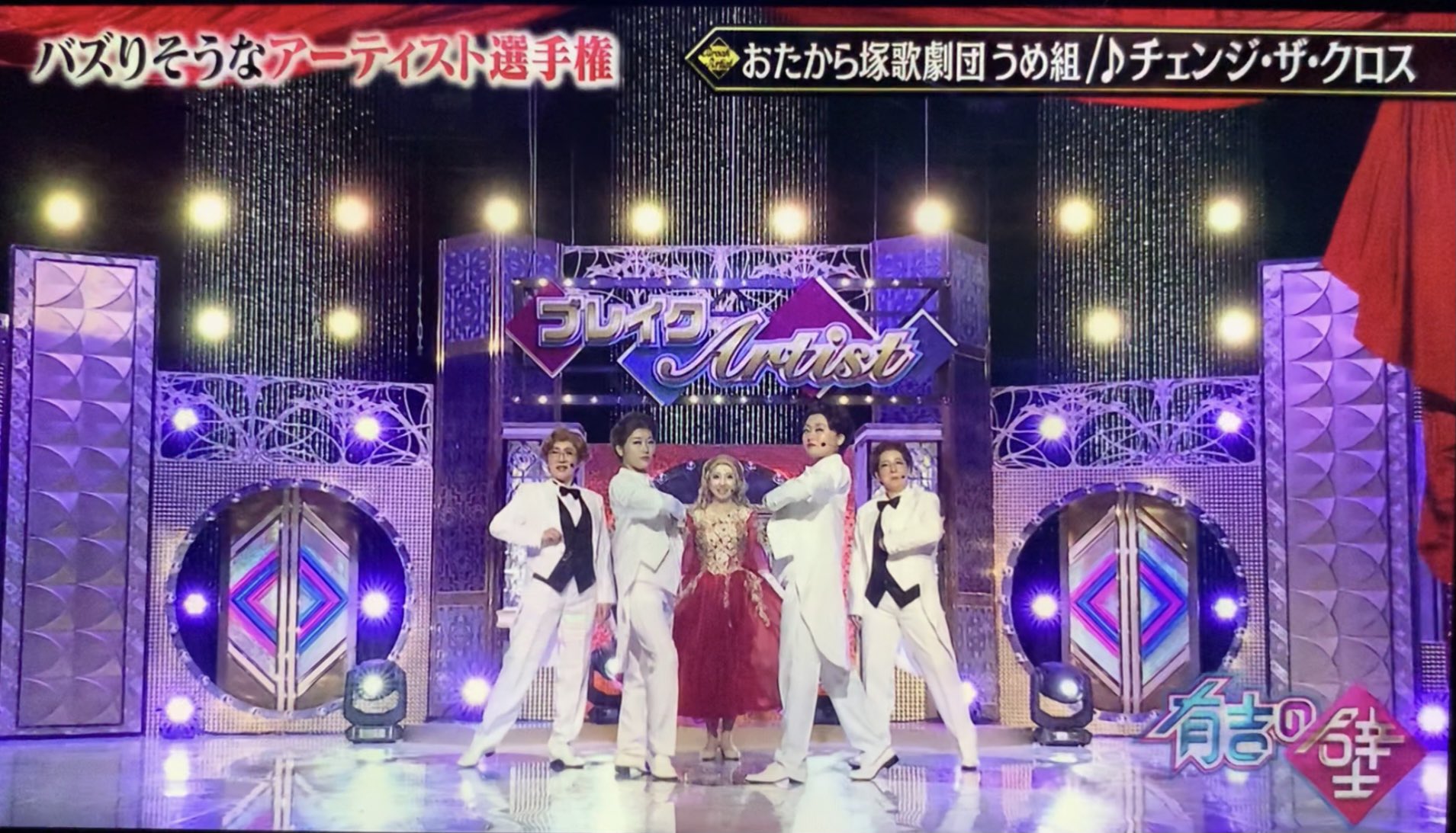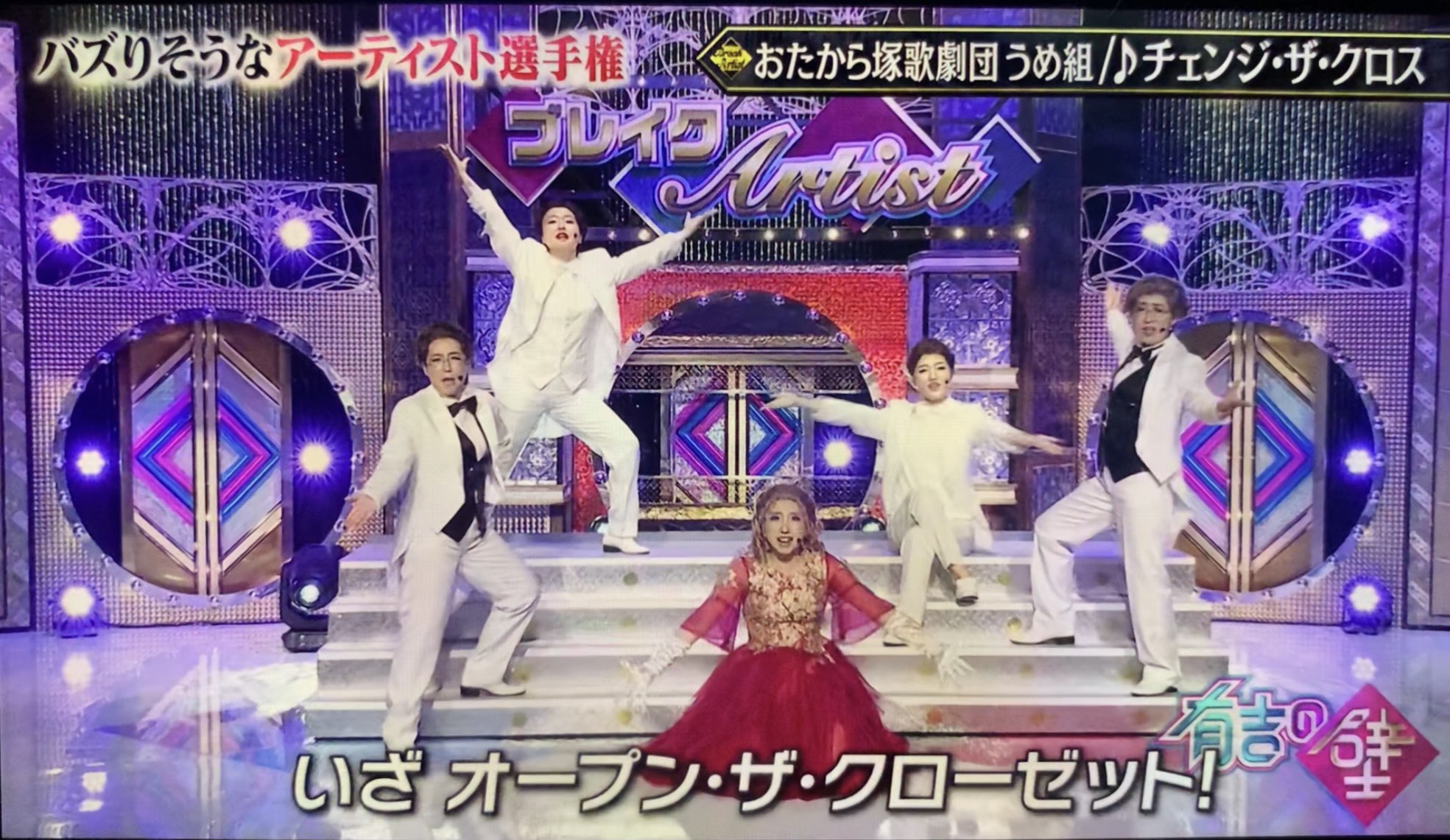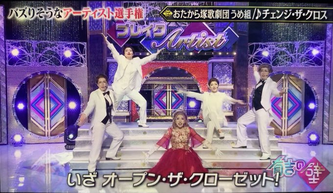 先程放送されていた"有吉の壁バズりそうなアーティスト選手権"に出演していた「おたから塚歌劇団 うめ組 チェンジ ザ クロス」の振り付けアシスタントをさせていただきました✨前回に引き続き男役の皆さんかっこよく、あいなぷぅさんかわいいが溢れてました♪