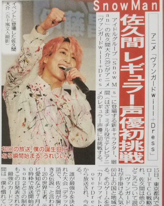 #SnowMan の #佐久間大介 がアニメ「 #ヴァンガードwillDress 」の新キャラクター #廻間ミチル 役でテレビアニメのレギュラー声優に初挑戦する