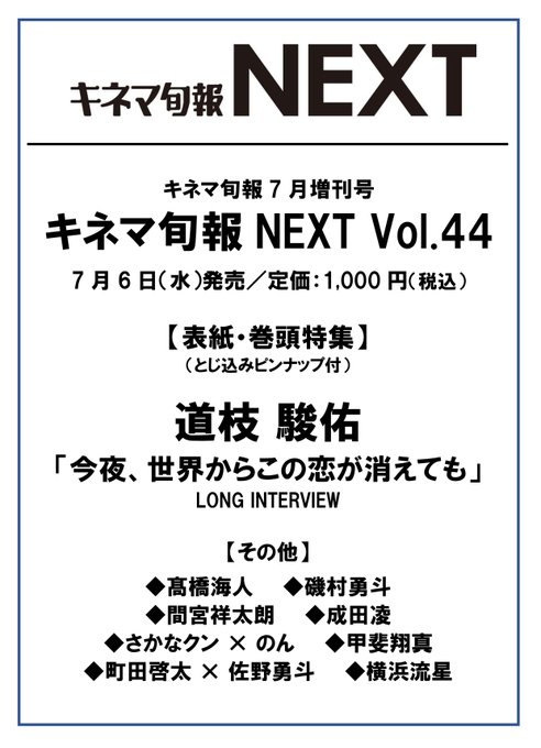 『キネマ旬報NEXT Vol.44』7月6日(水)発売