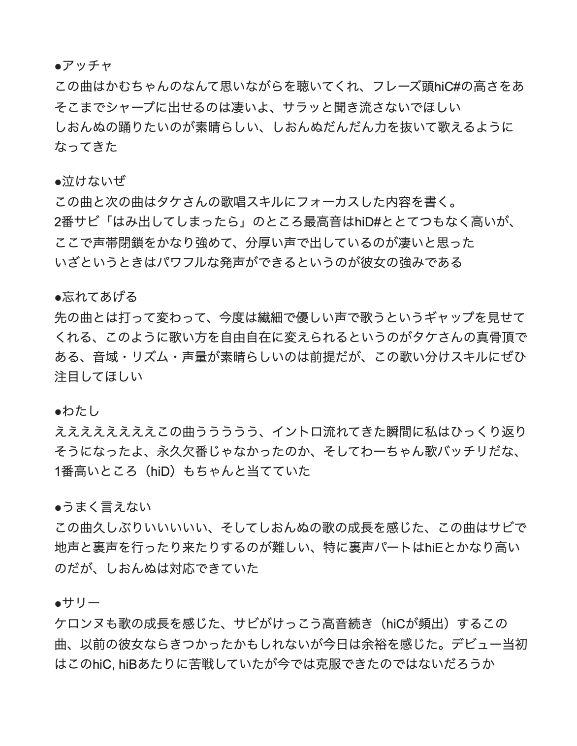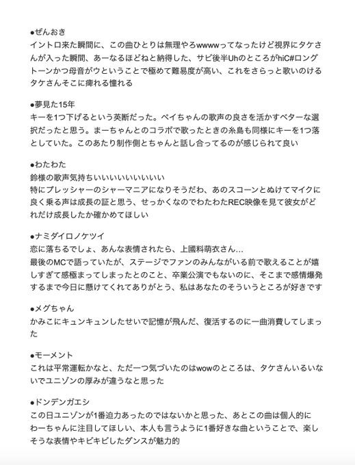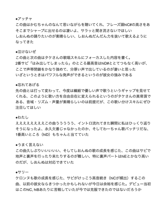 歌声が前より低音も響いてたし、何より選曲が最高すぎました…
