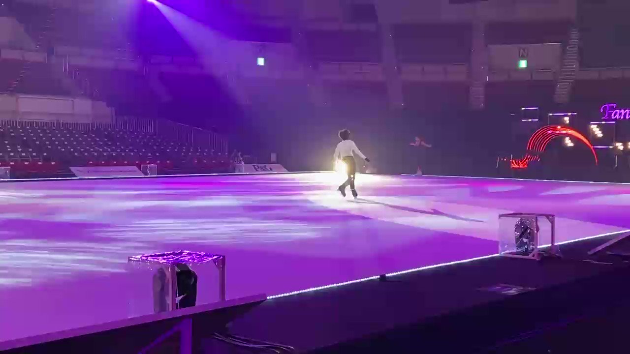 羽生くん、スケーター全員とハイタッチしていってた、その後ろ姿ずっと見てられる幸せ❤️最後の「ありがとうございましたっっ」も今日はためもなく、一発🆗 最後は右手を横に伸ばしてカーテンの中に入り、振り返って一礼、カーテンしまる、、、が全部スローモーション脳内再生 #FaOI神戸