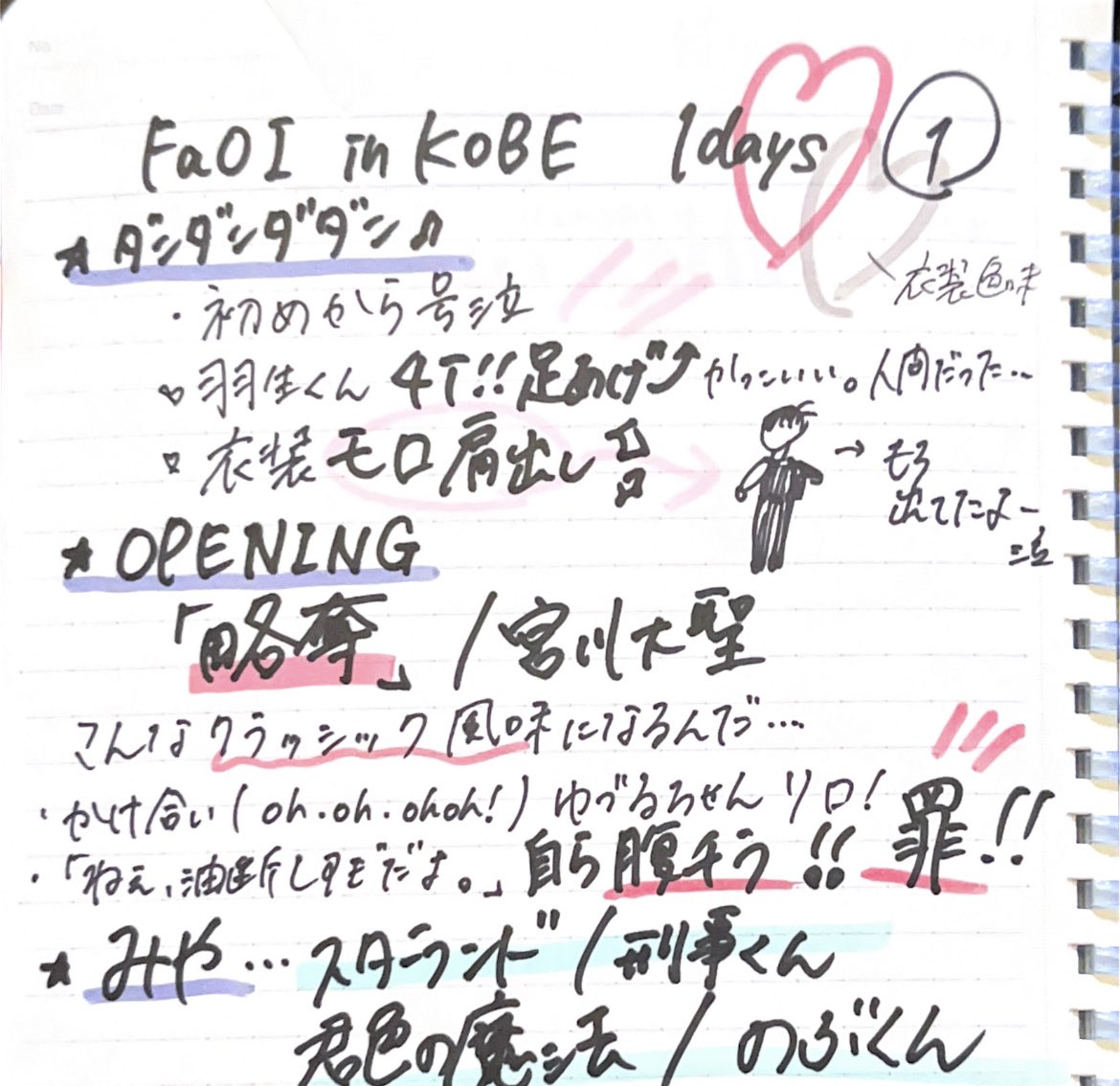 羽生くんは最後までキレッキレでステージ裏の席にも合図送ったり本当全方面見て踊ってくれてて、ステージよりの席だったけどめちゃくちゃ一緒に楽しめた。#FaOI神戸