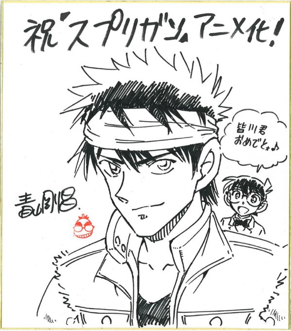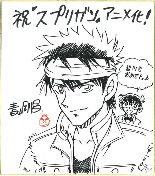 青山先生からは、バンダナ姿の優と、アニメ化を祝うコナン君のイラストが!