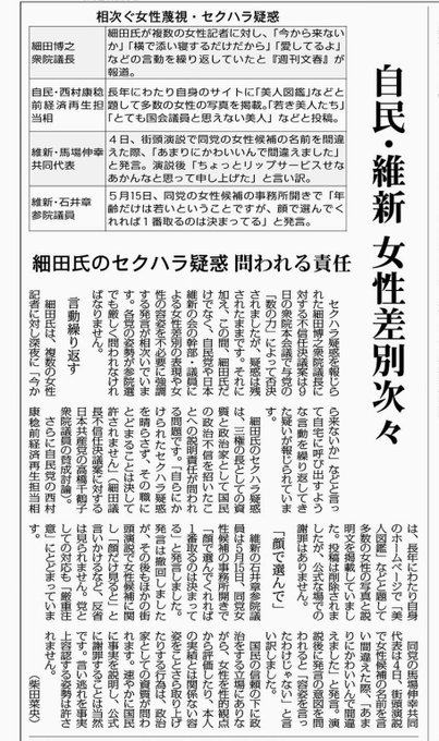 #猪瀬直樹 氏が日本維新の会参院選候補の #えびさわ由紀 氏に対して #セクハラ