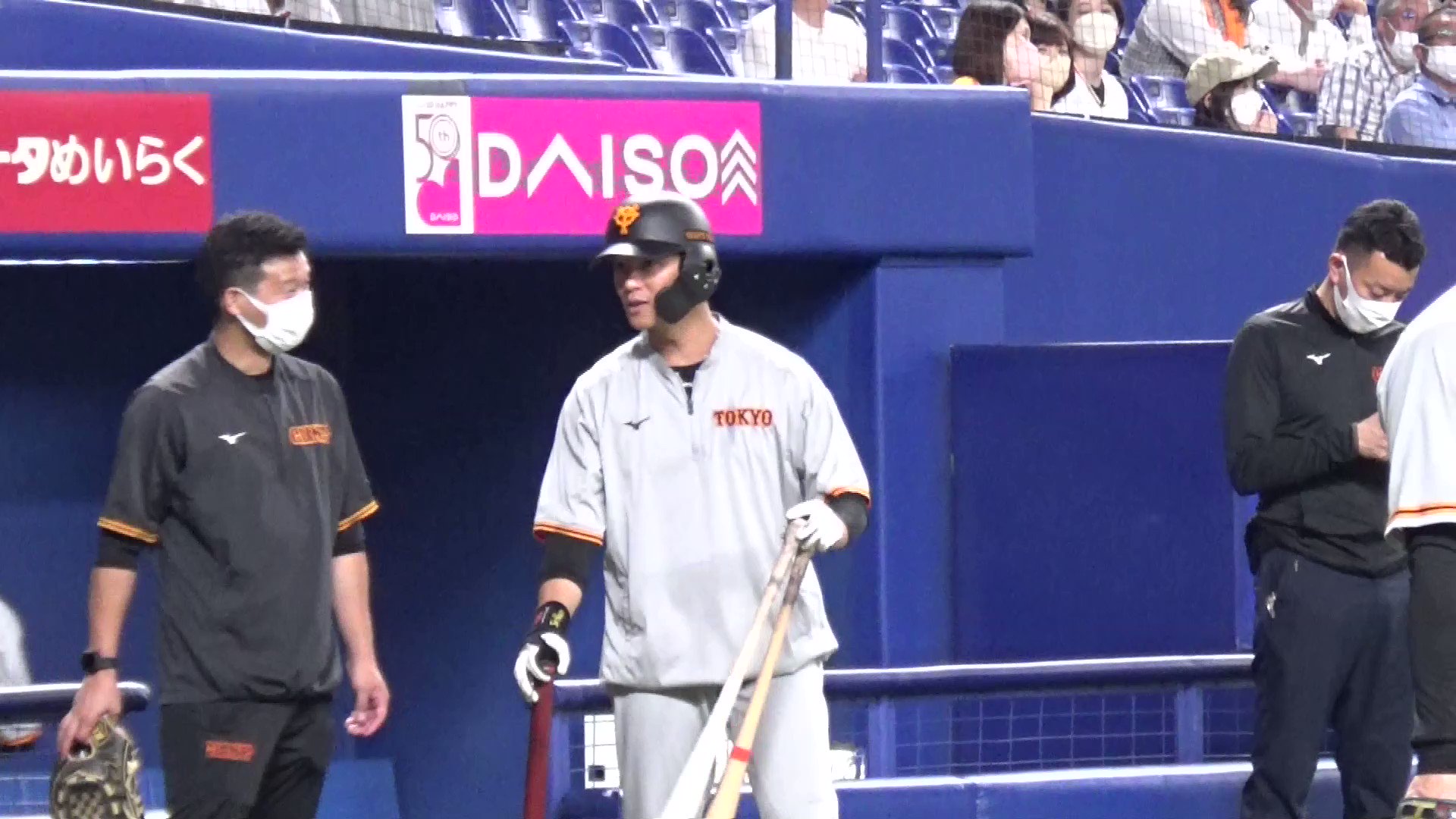 降板後防具を裏に置いてきてベンチに戻ってきたら、ポツンとした背中があったので当たり前のようにスッと隣に立ったコバヤシィ。