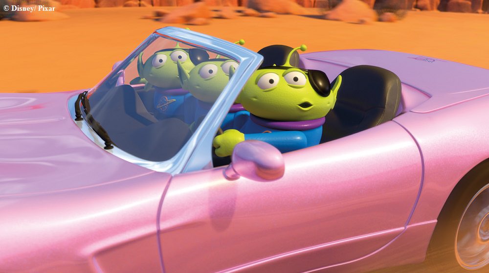 「トイ・ストーリー」1作目に登場し、以来ピクサー作品ではいつも出てくる“お約束”の🍕ピザ・プラネットのトラック。今回は、ピエロのチャックルズが語る回想シーンで、ロッツォたちが乗る車として登場します。