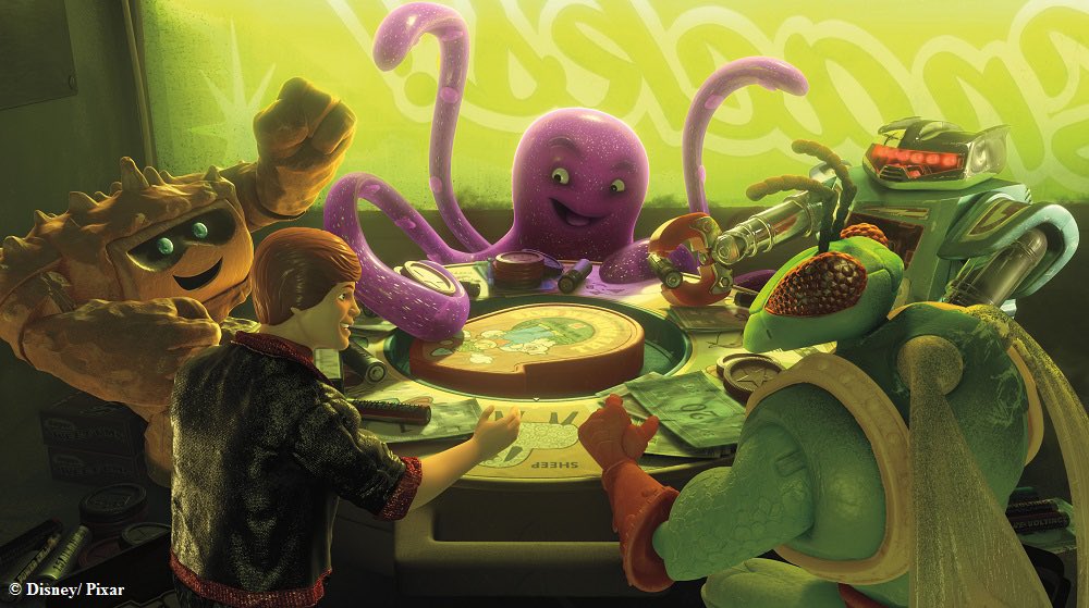 長いピクサーの歴史の中で、動物のぬいぐるみ🧸を描くのは本作で初挑戦だったそう。アニメーターは動物のぬいぐるみをスタジオに持ち込み、シワや全身のよじれかたを研究。ロッツォの古びた感じなどを表現したそうです。