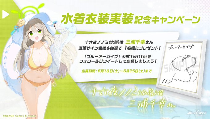 十六夜ノノミ(水着)役 #三浦千幸 さんのサイン入り色紙を抽選で1名様にプレゼント!