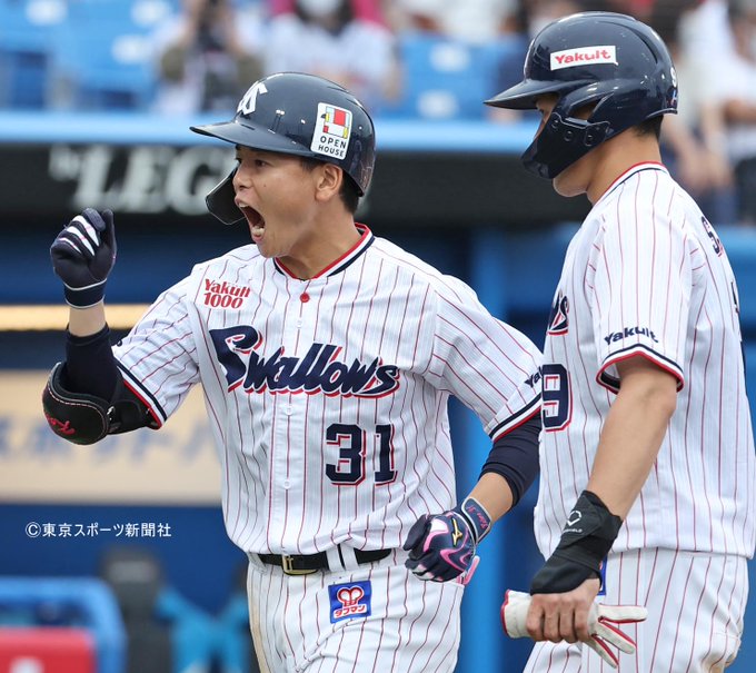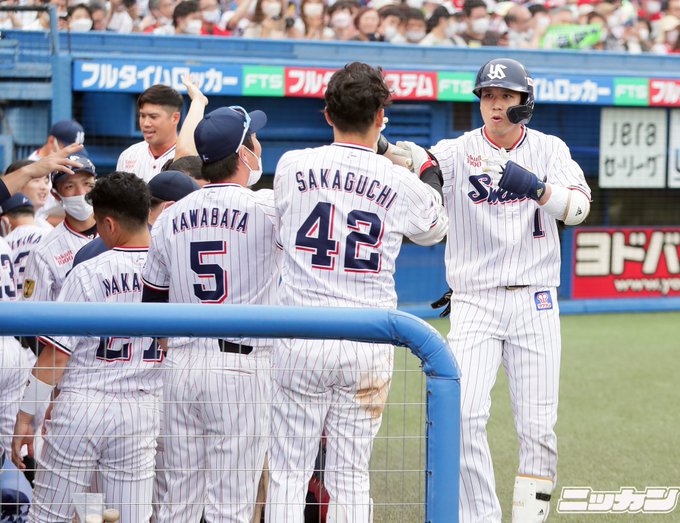 【#ヤクルト】球団史上初10カード連続勝ち越し!両軍で30安打の乱打戦制す #山崎晃太朗 が逆転V弾! #村上宗隆 #山田哲人 #田口麗斗 nikkansports.com/baseball/news/… pic.twitter.com/qA8HrQXi4O
