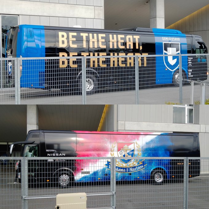 #fmarinos チームバスがスタジアムに到着!