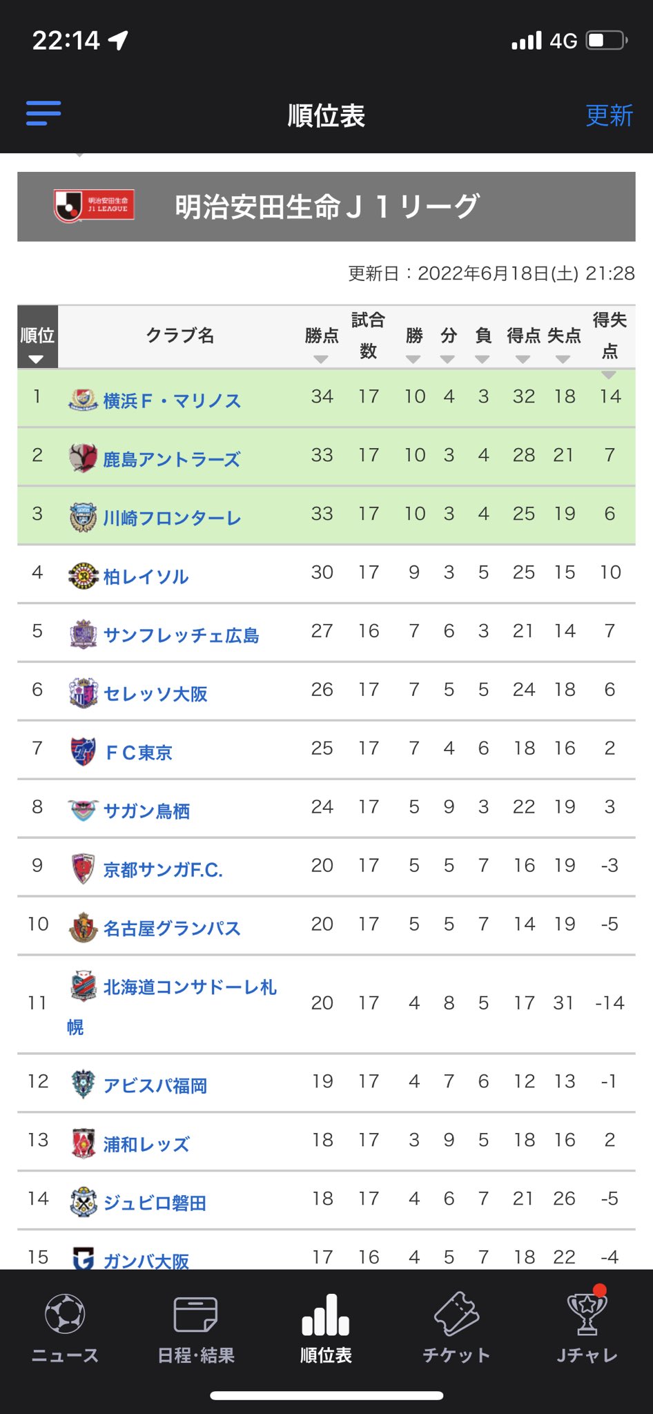 2022明治安田生命J1リーグ 第17節