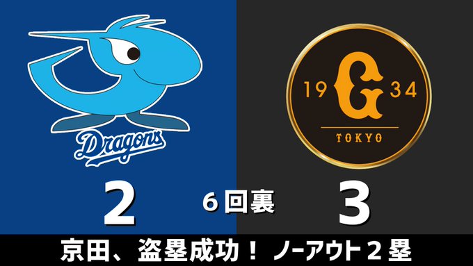 6回裏 京田、盗塁成功! ノーアウト2塁