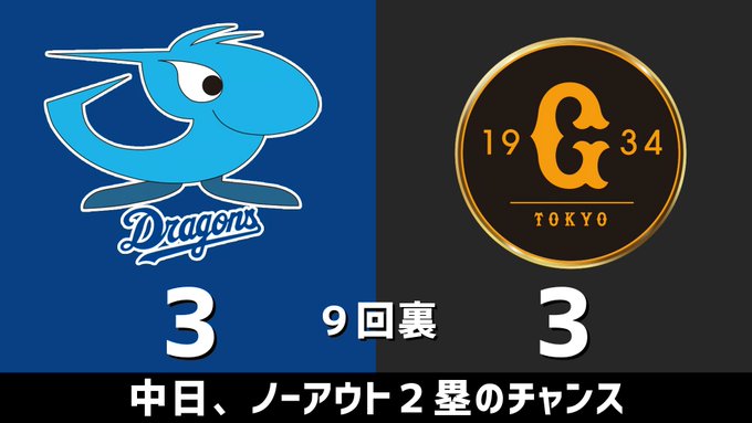 9回裏 中日、ノーアウト2塁のチャンス