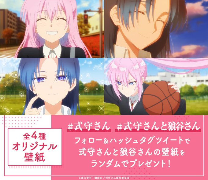 本日16:00~21:30にABEMAアニメ公式Twitter(@Anime_ABEMA)をフォロー&【#式守さん】と【#式守さんと狼谷さん】をつけてコメントを投稿した方に、壁紙(全4種)をランダムでお渡し✨