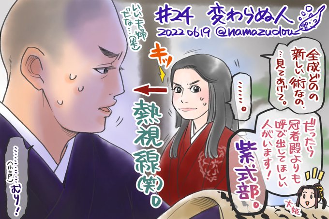 そして冠者殿の苦しい物真似をキメ、最終的に紫式部(想像)まで演ってくれる全成どの、まじエンターテイナー(劇中のポジションは決してエンターテイナーではない)。