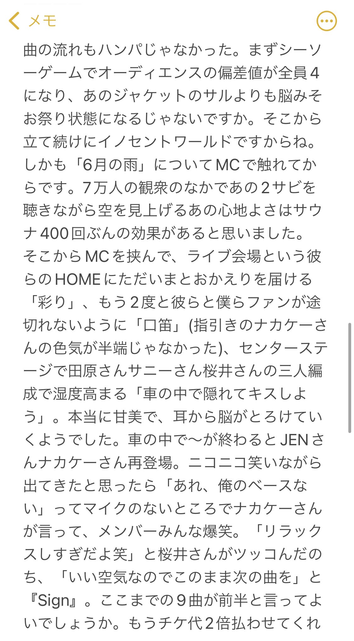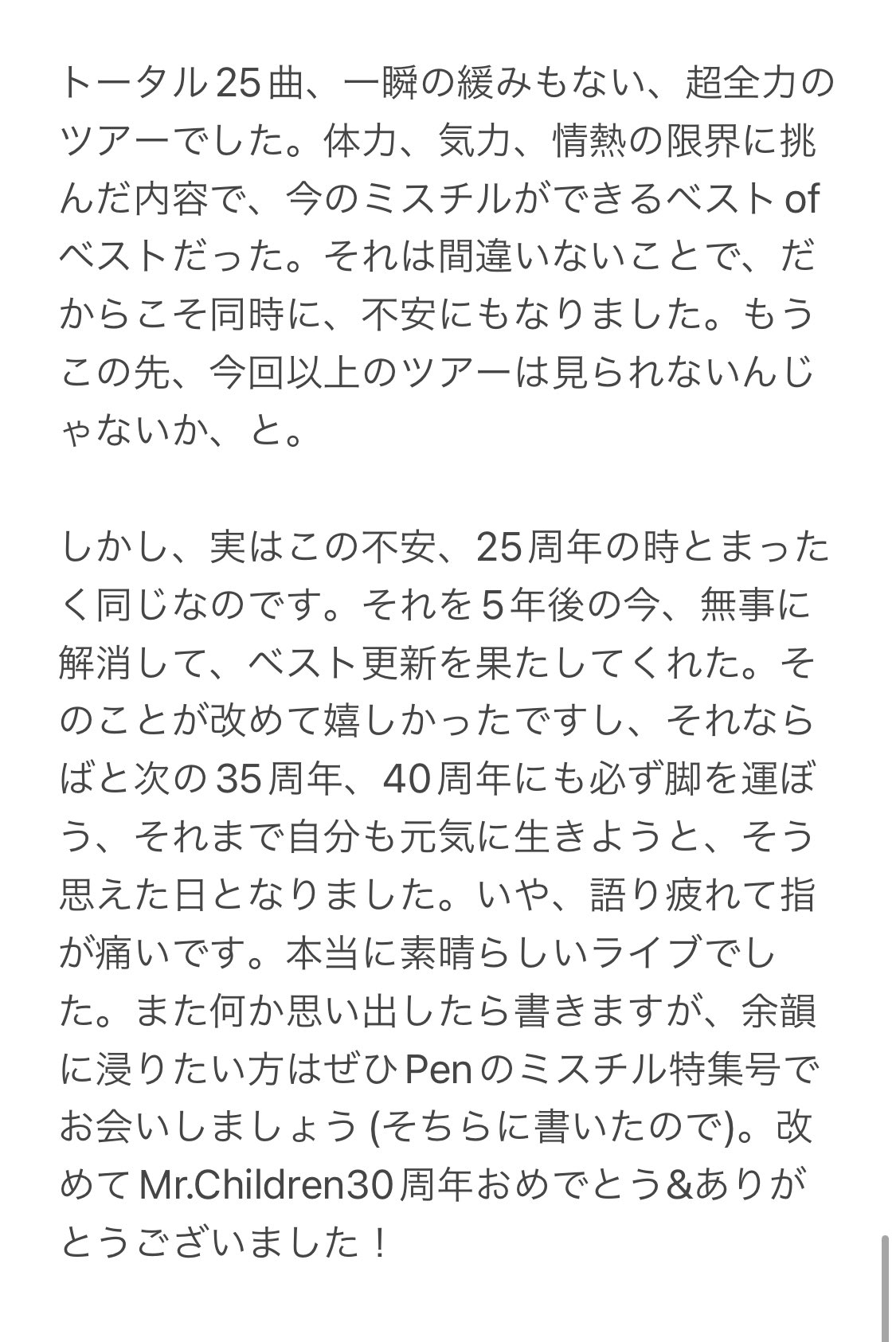 ライブ参加して改めて…Mr.Childrenの音楽、スタッフ、お客さんが大好きで愛でていることが分かりました😭