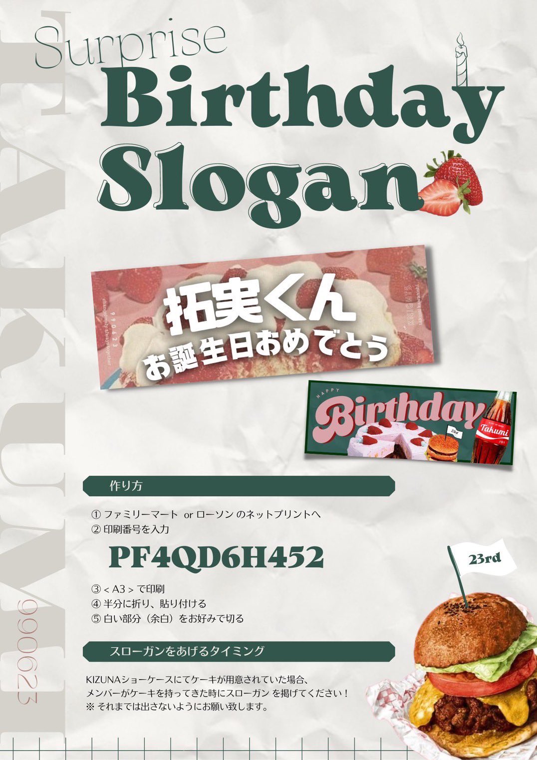 誕生日スローガンをたくさん印刷してくれた方がいて周りに配ってくれました。
