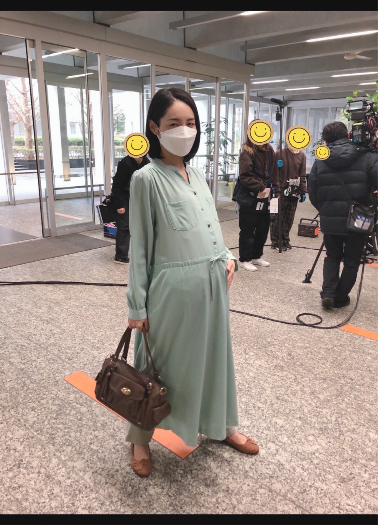 佐知山のワンピース。受付でジョー君と再会した時に、後ろの凛燈舎の壁と受付カウンターを挟む色味のバランスが素敵になるかなぁ…と考えて下さった衣裳の遠藤さん✨
