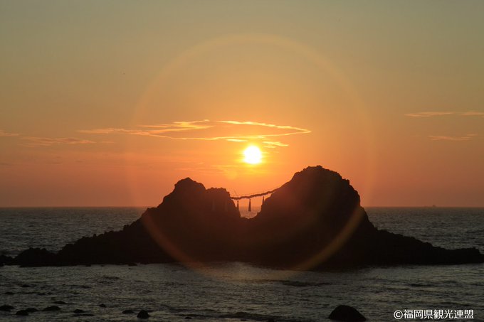 夏至前後の期間では、福岡・二見ケ浦にある夫婦岩の間に夕日が沈む様子が見られ、とっても神秘的なんです✨