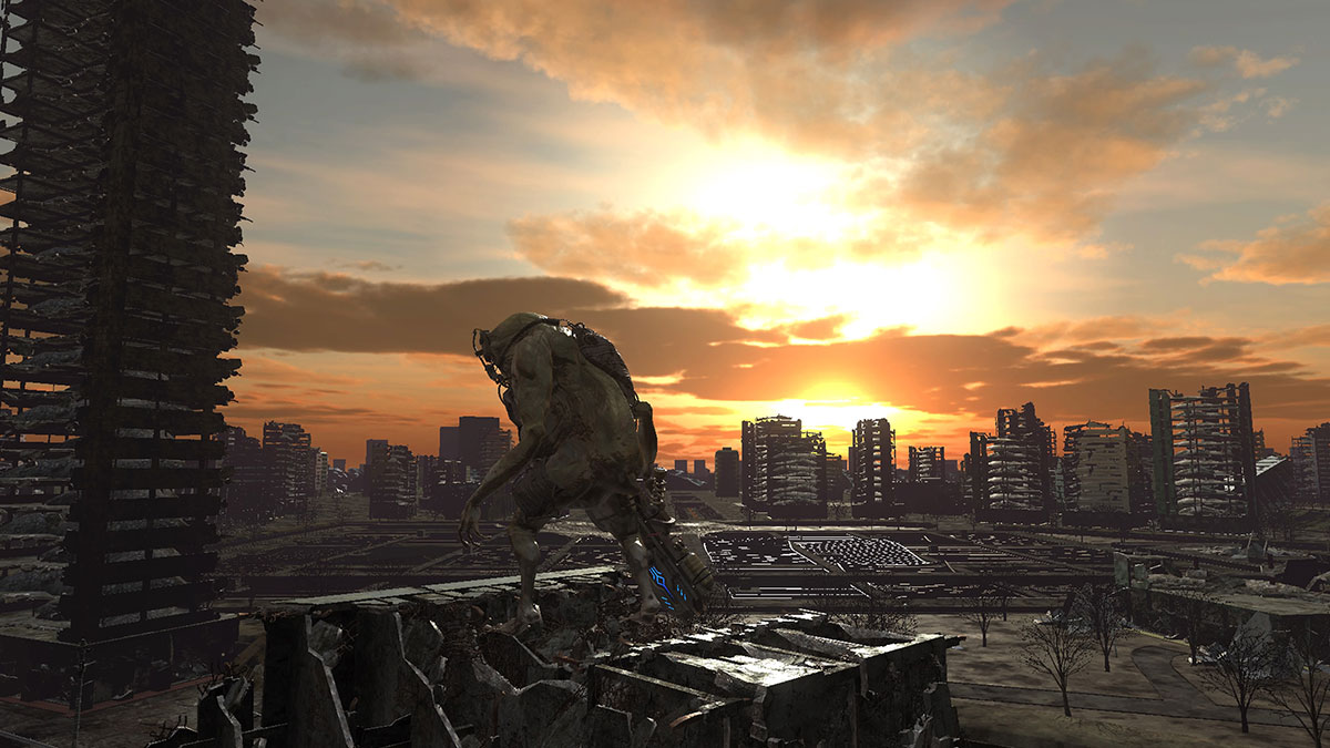 #EDF5 での戦いで荒れ果てた『地球防衛軍6』の街にも美しい太陽は昇る。