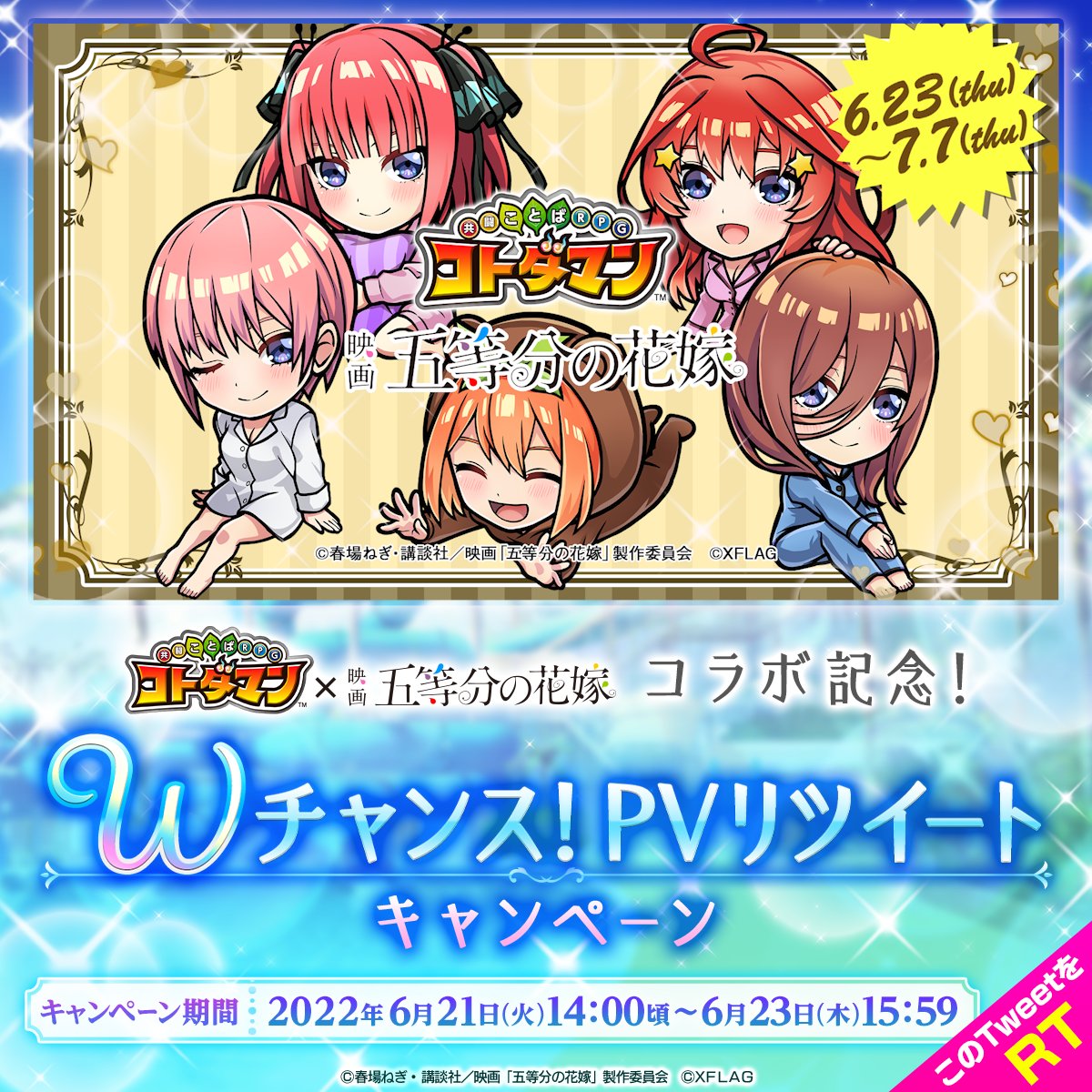 #コトダマン五等分の花嫁コラボ を付けて引用RTでコミックス全巻セットが抽選で5名様に当たる!