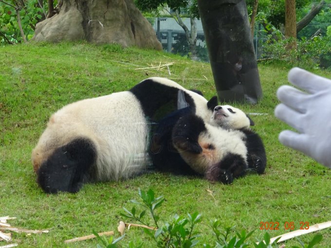 2022.6.23 #シャオシャオ #レイレイ #お誕生日 #上野動物園 #レイちゃんはおちりだけ😆 pic.twitter.com/sv7ynKzcjT