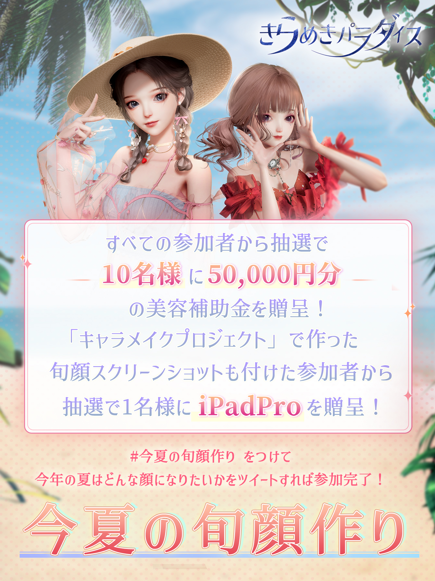 『きらめきパラダイス』であなただけの夏顔を作り上げて、TwitterやInstagramにで投稿してください❤