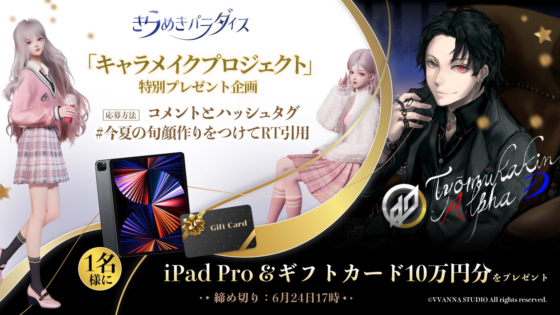 「キャラメイクプロジェクト」で作った旬顔スクリーンショットも付けて投稿してくれた参加者から抽選で1名様にiPad Proを贈呈✨
