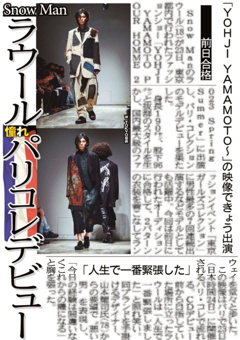 「Snow Man」#ラウール がパリコレデビュー、「#ヨウジヤマモト」のモデル務め「人生で一番緊張」:中日スポーツ・東京中日スポーツ chunichi.co.jp/article/495030 #SnowMan #パリコレ
