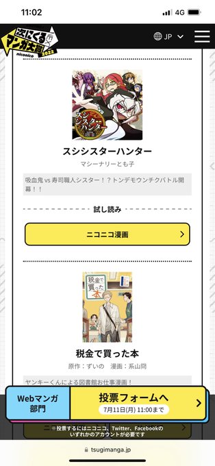 投票は【7月11日(月)11:00まで】 tsugimanga.jp/nominate2022-w… #次マン