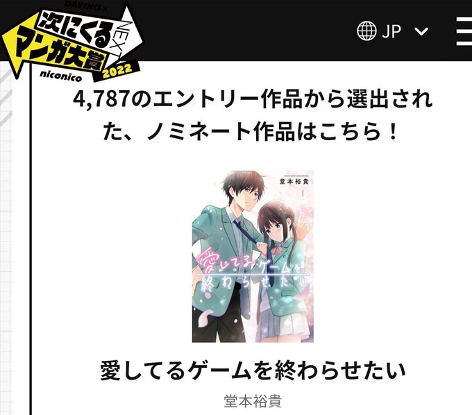 『愛してるゲームを終わらせたい』ノミネートされましたー!!(泣)エントリーしてくださった方々ほんとにほんとにありがとうございます!!